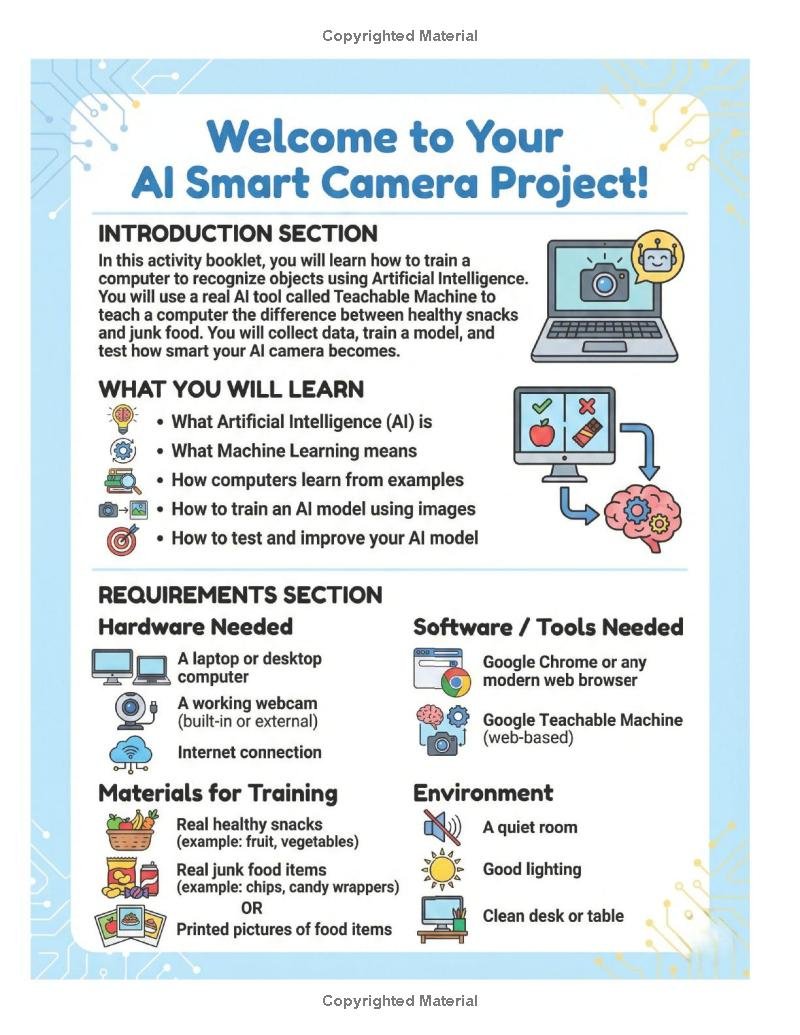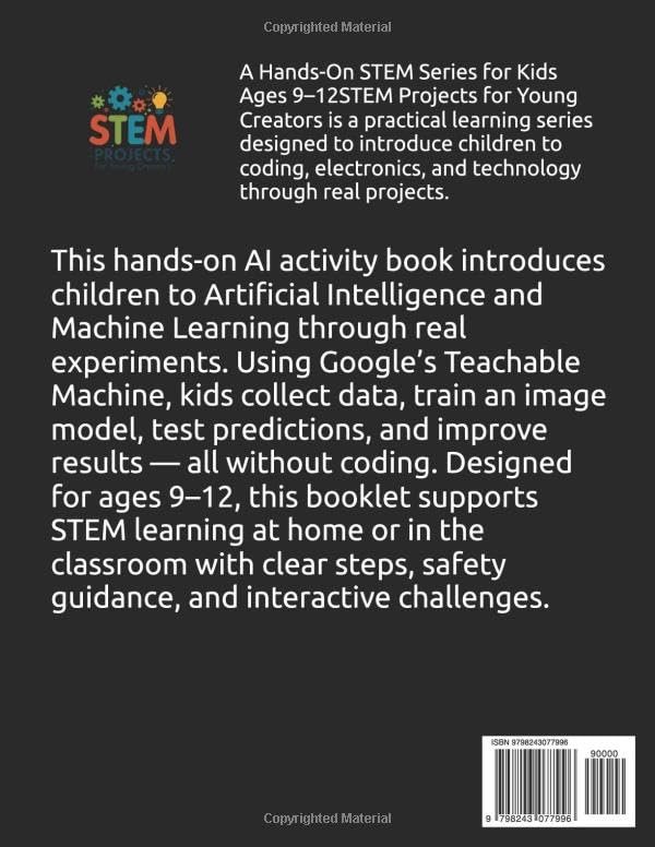Turn your webcam into a smart, thinking camera! In this hands-on STEAM activity book, kids aged 9–12 will discover how machine learning powers the intelligent cameras in smartphones, robots, and security systems—using Google’s free Teachable Machine tool and absolutely no coding required.